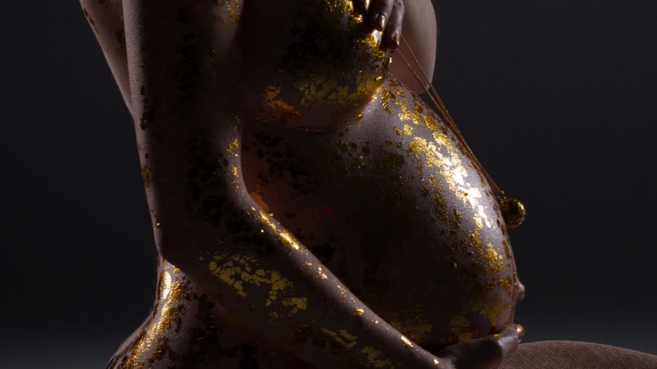 Une grossesse, par exemple, peut devenir le cœur d’un projet artistique singulier : des feuilles d’or déposées délicatement sur la peau, une lumière douce qui caresse les courbes, une atmosphère épurée, presque mystique.